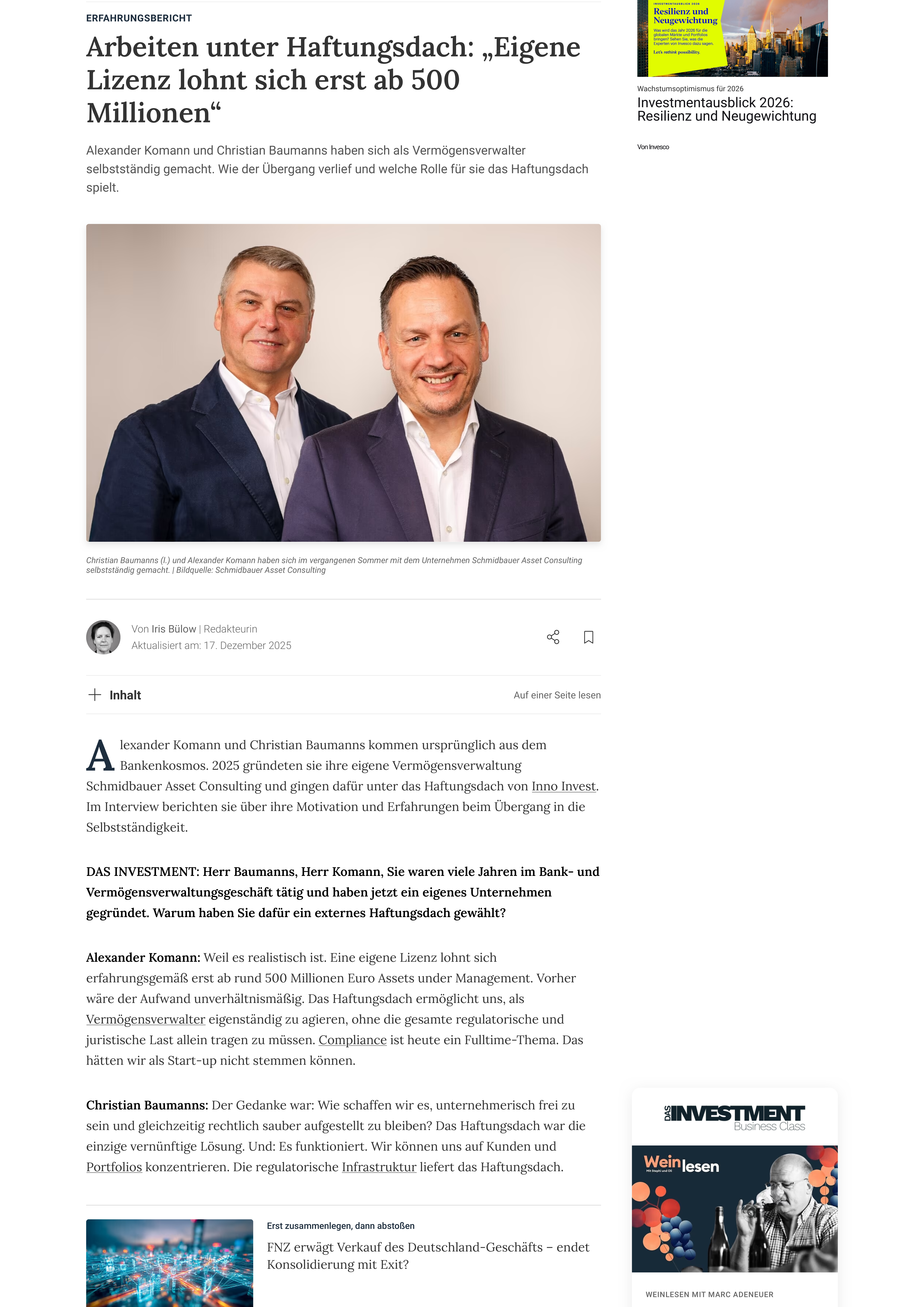 ANLAGEBERATUNG/-VERMITTLUNG